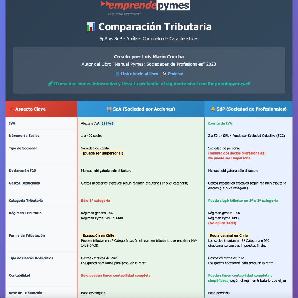 Cuadro comparativo entre Sociedades por Acciones (SpA) v/s Sociedades de Profesionales (SdP)